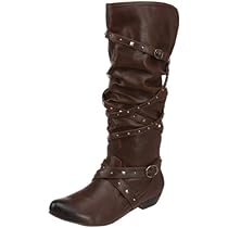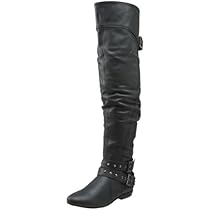 Get clued into your sassy style with this knee high boot from Breckelle's. Tammy41 brings you a leatherette upper with a buckle on the major cuff detail. Completed on a low 1 inch wedge heel. Easy slide on and off. Avaliable in 3 colors!