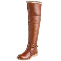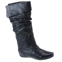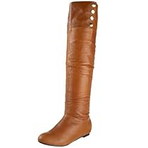 This boot is exactly what I was looking for in a leather over-the-knee boot. If I wear it with the top folded down there isn't any sagging as may happen with a suede version. The side snaps are not only decorative but also keep the boot in place. The shaft allows room for both leggings and skinny jeans. The sizes run a tad big so I went with 1/2 size smaller which fit perfect! Wish I had purchased a brown pair.